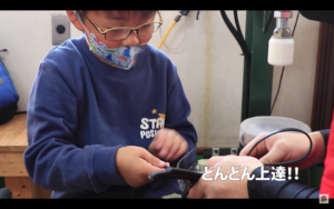 完成したものを手渡します。初めてのマイグローブをどきどきしながらはめようとする様子が伝わってきますね!