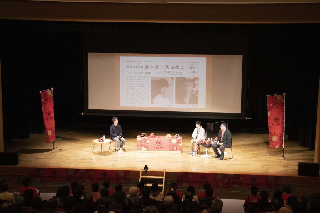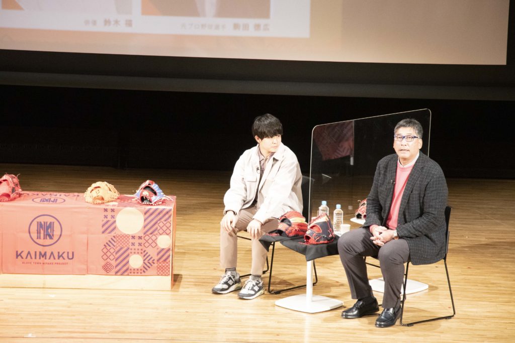 まずはじめに特別記念対談としまして、野球とグローブが好きで有名な俳優の鈴木福さんと三宅町出身の元プロ野球選手の駒田徳広さんにお話頂きました。グローブの町、三宅町ならではのトークが満載でした。