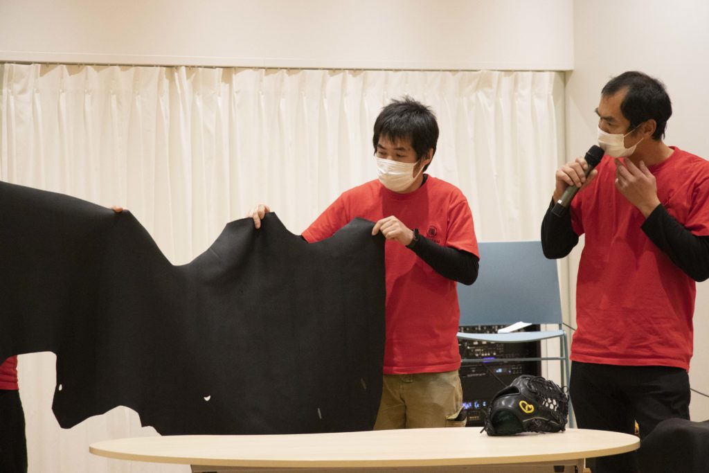 三宅町のグローブ職人も最近は牛革だけではない新たな革素材も試したり扱ったりされています。