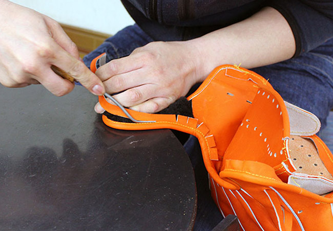 製造工程の中、あらゆるポイントで革をなじませる作業を行ない、その製法がデイユースに耐えうる耐久性と手に馴染む柔軟性を両立させた高品質のグローブを生み出している。